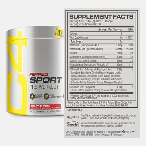 متابولیسم خود را تقویت کنید: C4 با مواد چربی سوز مانند CLA و DygloFit فرموله شده است تا به شما کمک کند سخت ترین تمرینات را انجام دهید. Ripped Sport می تواند هم تیمی شما در رسیدن به اهداف بدنی و تناسب اندام شما باشد
