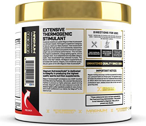 هیت اکسلریتد مگنوم یک چربی سوز متعادل است که انرژی ملایم و پایداری را ارائه می دهد که بدن شما را ساعت ها حفظ می کند. این مکمل کمک می کند تا چربی در سراسر بدن به حرکت در بیاید تا به صورت انرژی مورد استفاده و سوزاندن قرار گیرد.