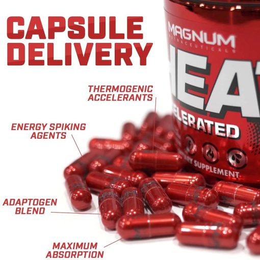 چربی سوز هیت اکسلریتد مگنوم 30 ماده چربی سوز را برای حمایت از محیط بهینه برای چربی سوزی ترکیب می کند. هیت اکسلریتد با تزریق عوامل ترموژنیک و محرک های طبیعی، دمای مرکزی بدن را برای کاهش چربی افزایش می دهد.