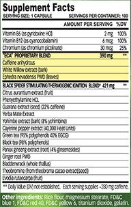 افدرا بلک اسپایدر 25 قادر است با 25 میلی گرم افدرا (افدرین) هر آنچه را که برای یک تمرین عظیم و عالی نیاز دارید به بدن شما بدهد. برای خرید کپسول چربی سوز بلک اسپایدر 25 کلوما فارما با قیمت مناسب به سایت ایران ساپ مراجعه کنید.